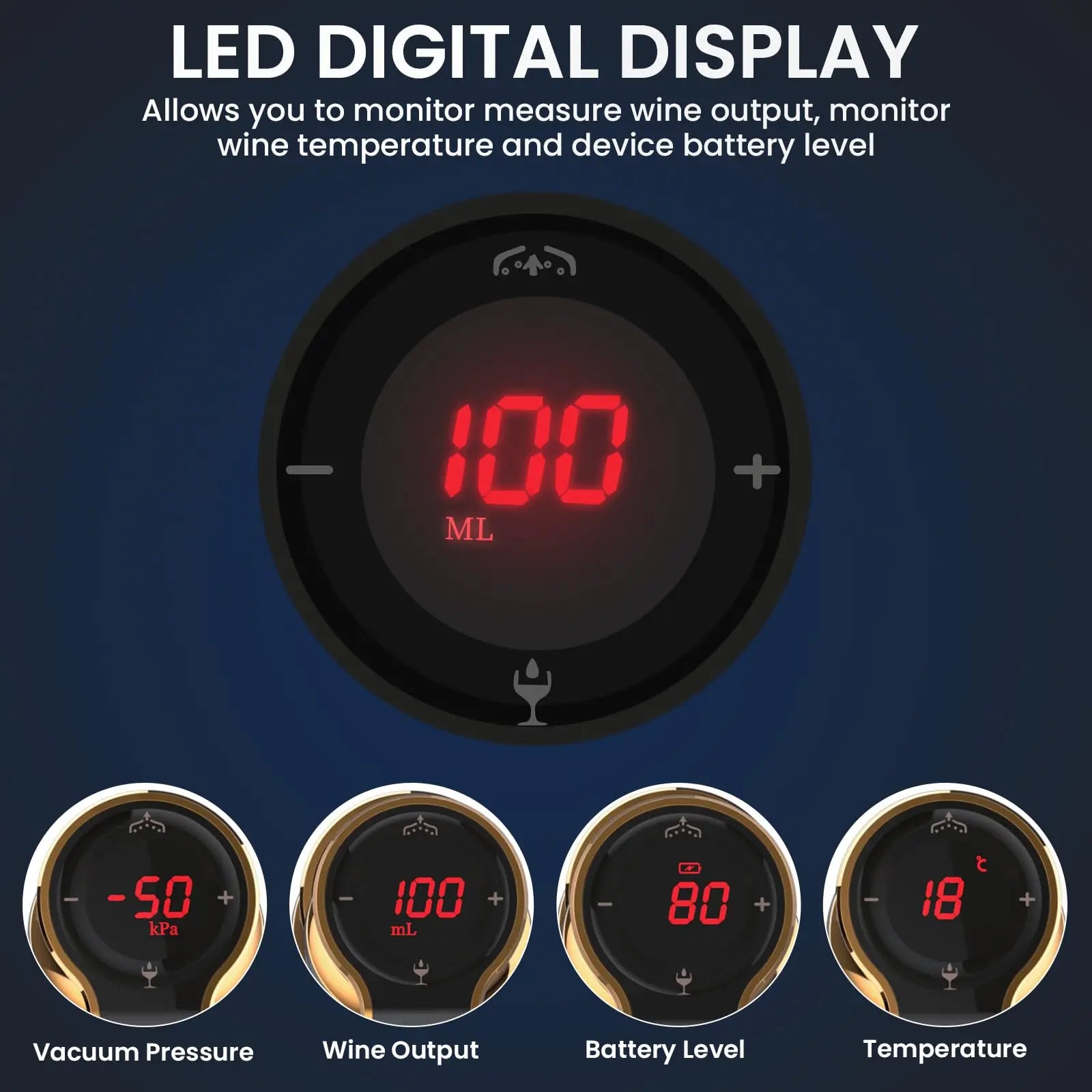 Luxurious 4-in-1 Electric Wine Aerator Decanter Dispenser & Vacuum Saver with LED Display Wine Pourer Gift for Women Wine Lover