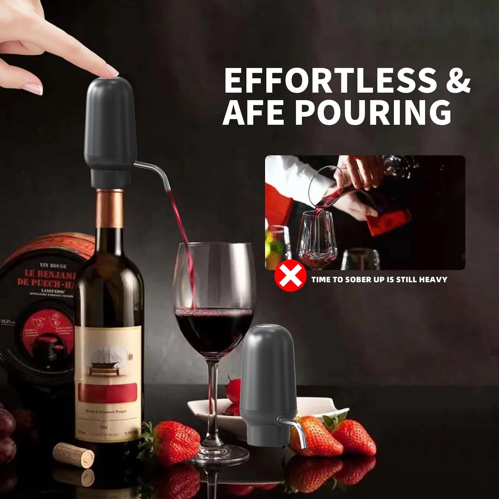 [Multifunctional Electric] :with foil cutter, electric wine stopper, electric bubbler and corkscrew, providing a one-stop solution for opening, pouring and preserving wine.