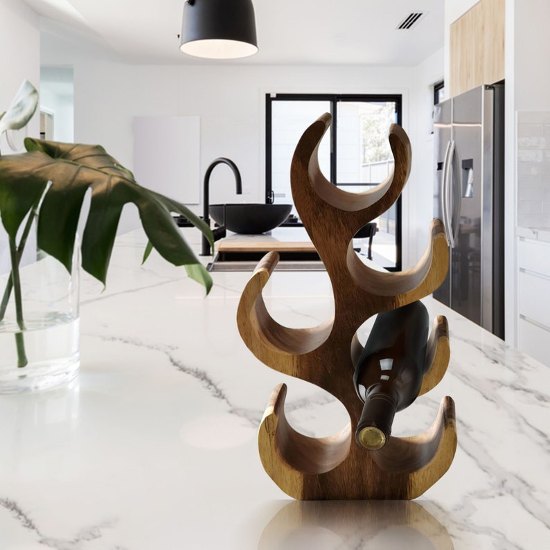 wooden Wine Rack Carved Wood 6 bottle Wine Storage-Acacia Wood handcrafted